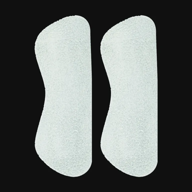 Fjern den gennemsigtige film og placer antislippen i hælkappen.