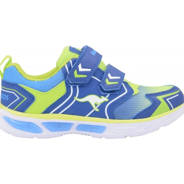 Seje KangaROOS sneakers til drenge. Skoen har rigtig mange smarte detaljer og har lys I sålen der blinker når du går. Den har 2 velcroremme som gør det nemt og hurtigt at få skoen på.