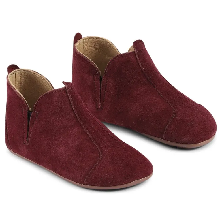 Tibby er en blød og lækker hjemmesko. Den er produceret i en kombination af lækkert ruskind og læder der gør, at de små fødder kan ånde. Den tynde og fleksible gummisål sikrer stabilitet og er perfekt til dage fyldt med leg – både i institution og derhjemme.