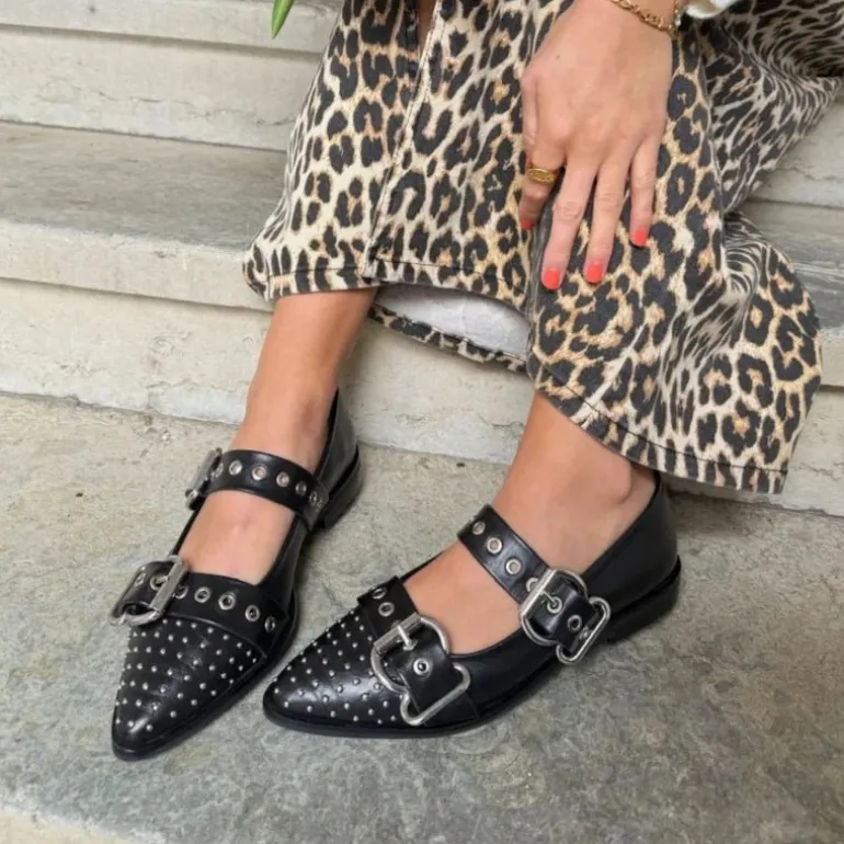Must have ballerina sko, med nitter og remme med store spænder. Dejligt blød læder og bløde fleksible såler