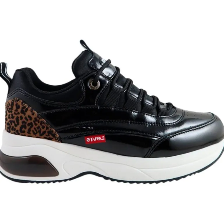 Super trendy sorte sneakers til piger med leopard mønster bagpå.