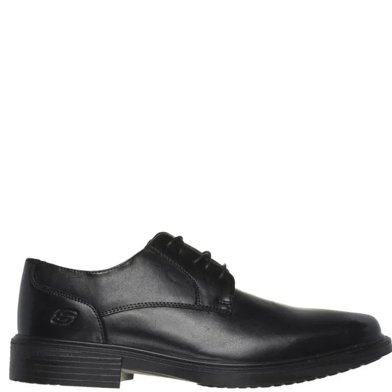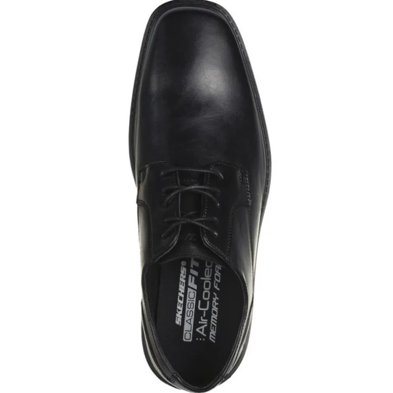 Tilføj et nyt niveau af komfort til dit look med Skechers Miller – Enrico. Dette Oxford-design har en glat læderoverdel med snørebånd og en komfortabel og støttende Skechers Air-Cooled Memory Foam indersål.