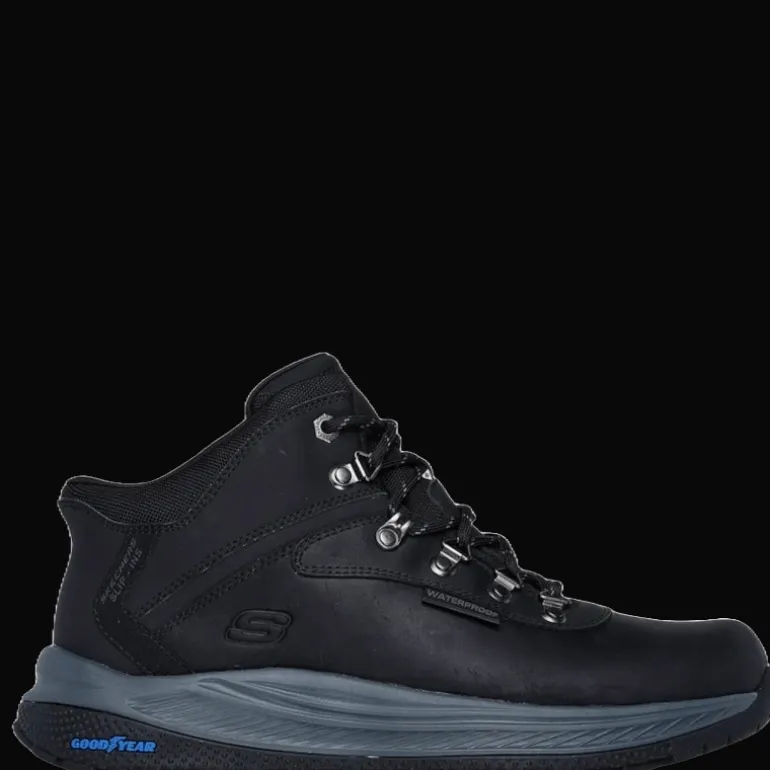 Klassisk komfort og holdbarhed kombineres i Skechers Relaxed Fit: Slip-ins: Meroe – Pikeman. Denne vandtætte slip-ins støvle har et læder og syntetisk overdel med snørebånd, Skechers Air-Cooled Memory Foam indersål og Goodyear Performance ydersål for forbedret trækkraft, stabilitet og holdbarhed. Denne støvle er ideel for dig, der ønsker mere plads ved tå og forfod.