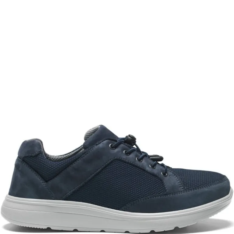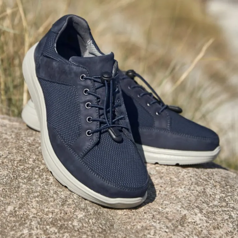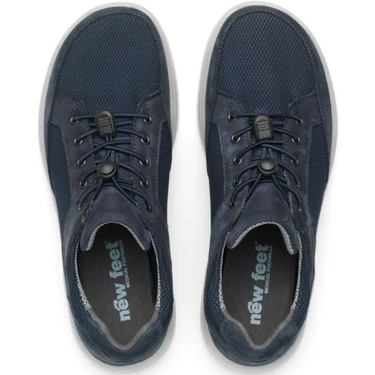 Smart sko til herre fra new feet. Skoen er udstyret med en smart og praktisk elastik snøre som gør den nemt kan justeres og tilpasses til de fleste føder. Skoen er lavet med pæn og praktisk overdel i en bladning af mesh og nubuck, som er med til at give skoen sit pæne udtryk. Skoen er lavet med en letvægts ydersål i PU.