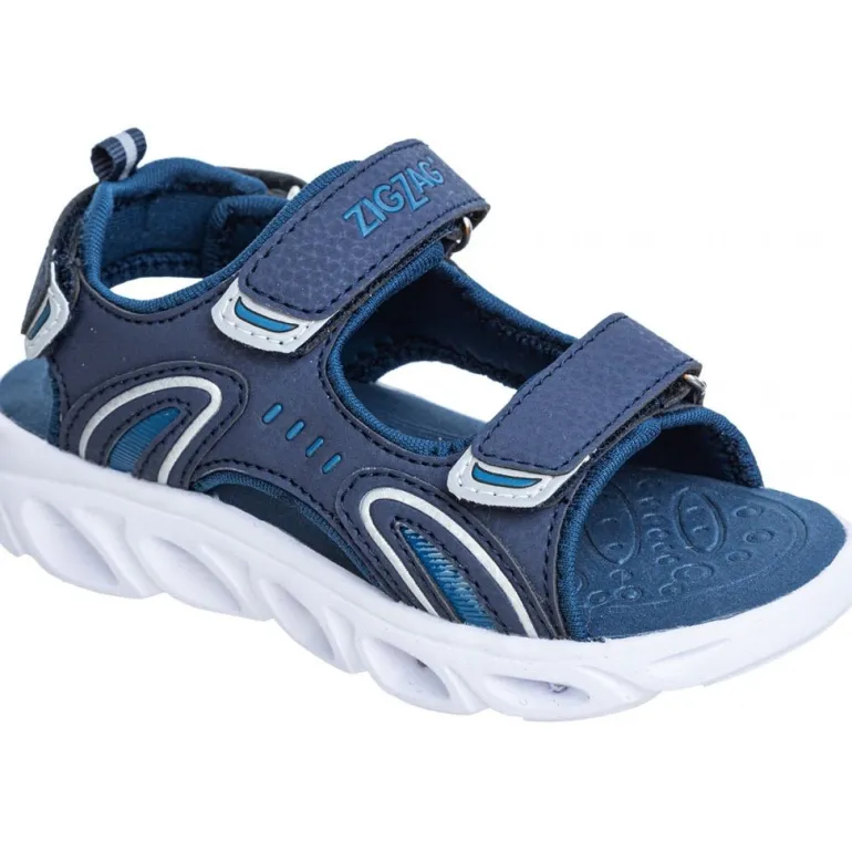 Blå Zig Zag sandal med velcro remme og lys i sålen, som blinker når barnet går.