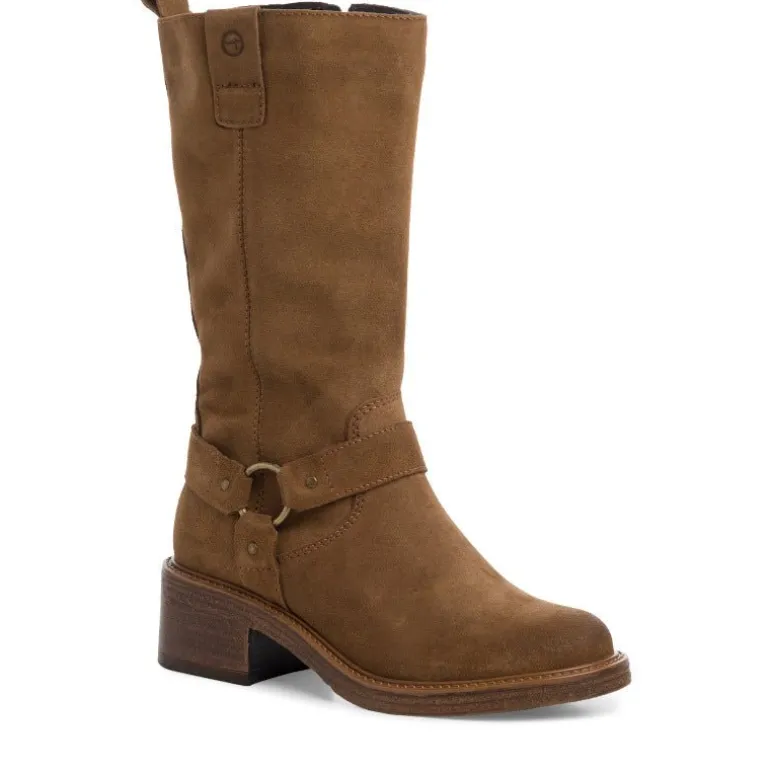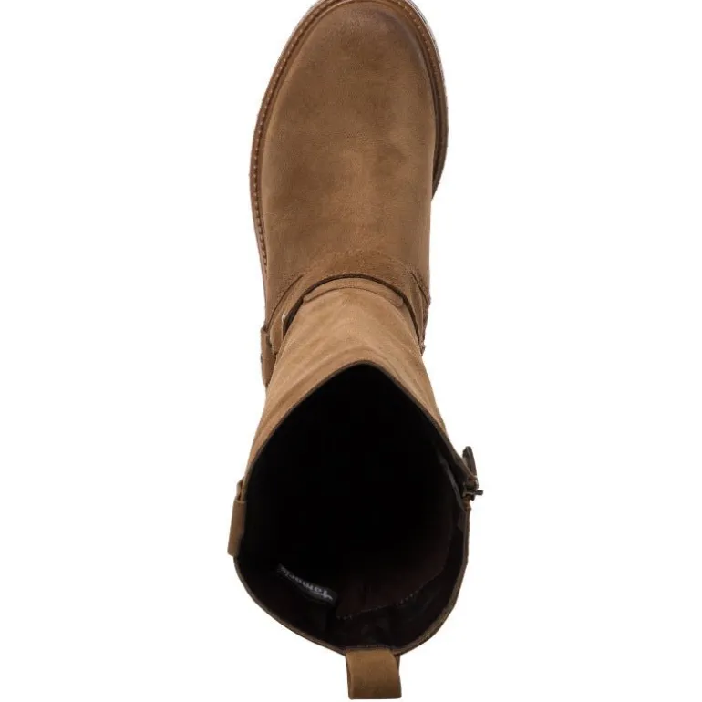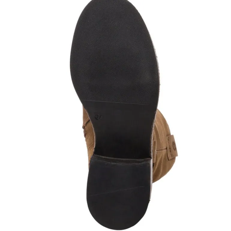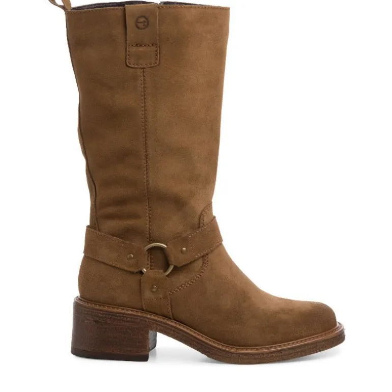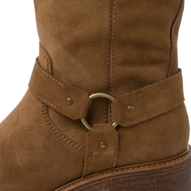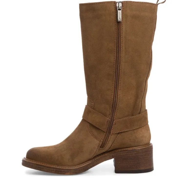 Super trendy brun ruskindsstøvle i biker-look med lynlås på indersiden.
