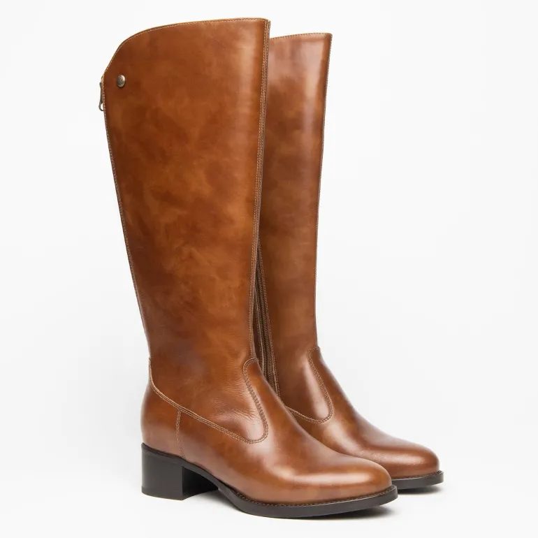 Skønne lange læderstøvler med lynlås bagpå, som åbner op for en elastik, der gør den større i vidden. Støvlen er med en 4 cm DryGo! Technology indersål, som er udtagelig, absorbere fugt og garantere rigtig god komfort. Lynlås på indersiden, så den er nem at komme af og i.