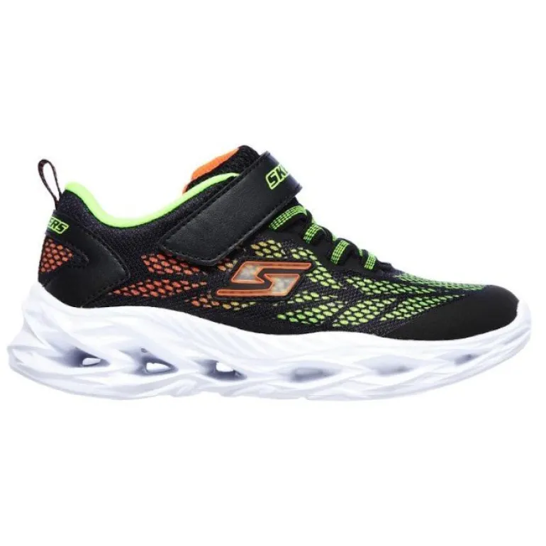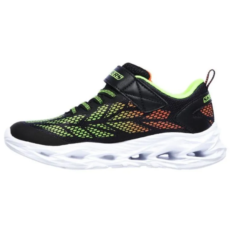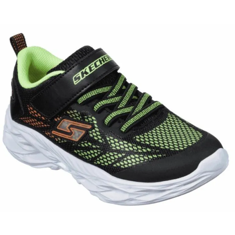 SKECHERS S Lights: Vortex-Flash atletisk sko. Vævet mesh stof og glat syntetisk overdel i en let op slip på stretch snøre letvægts træner sko med synlig teknologi mellemsål og ydersål design.