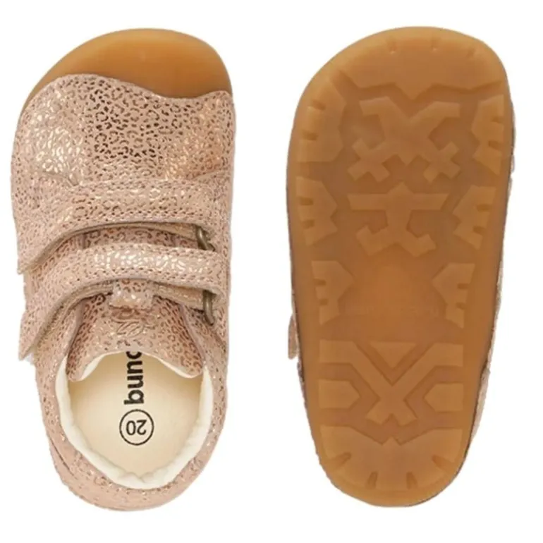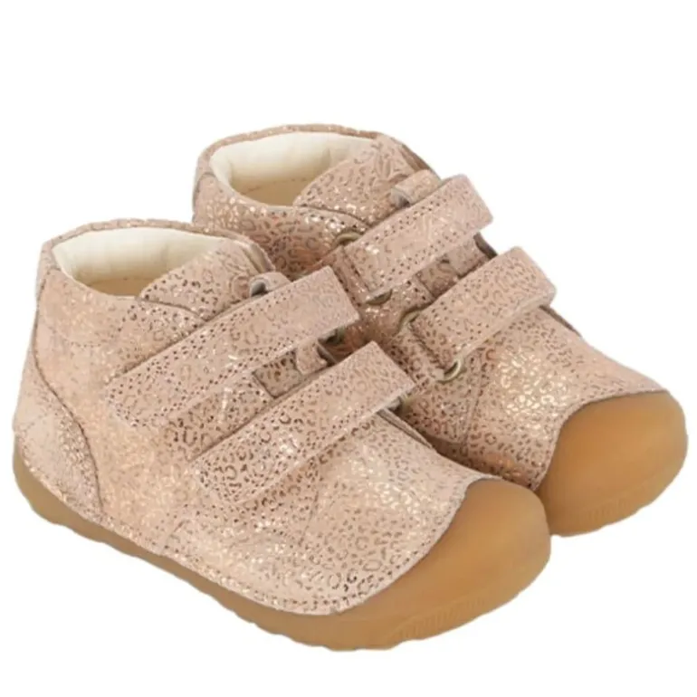 Skoen er blød og fleksibel, hvilket er vigtigt, da barnet ofte vil have skoen på lidt længere tid af gangen. Den bløde og fleksible sål samt slidstærke gummisnude er ideel til børn, der stadig kravler lidt, men samtidig øver sig på at stå og gå på egne ben. Gummisnuden sørger for ekstra tå-beskyttelse til de små tæer, når barnet går, leger og udforsker.