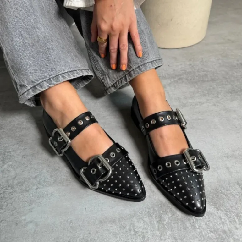 Must have ballerina sko, med nitter og remme med store spænder. Dejligt blød læder og bløde fleksible såler