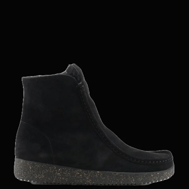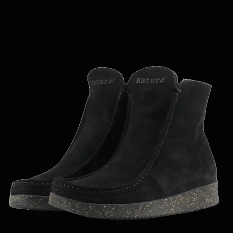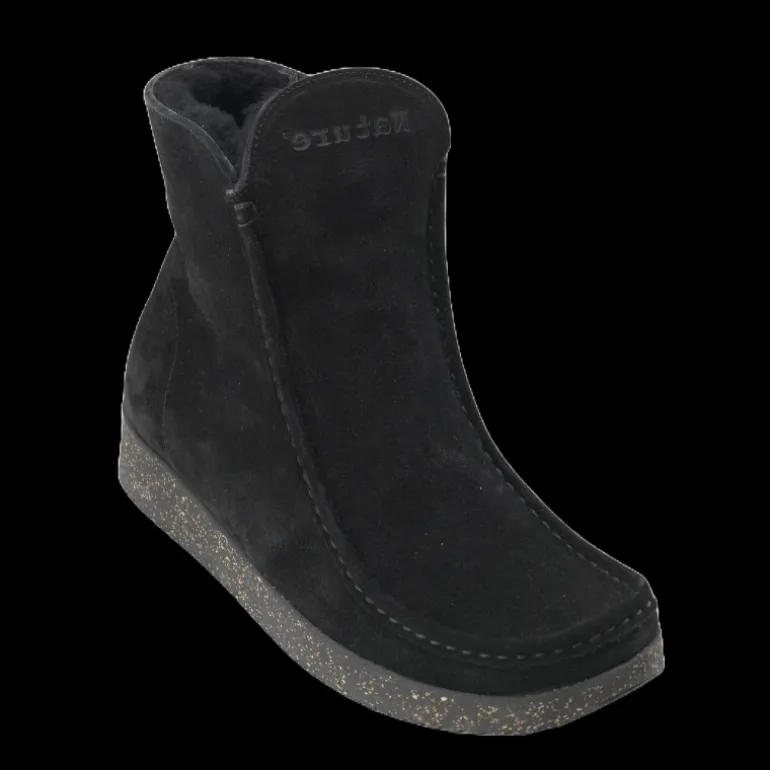 Nanna model 1014-128-002 er vores fodformede vinterstøvle, som er varmforet med kromfrit og 100 % ægte lammeskind for optimal komfort i den kolde årstid. Støvlen har et minimalistisk udtryk med lynlås på indersiden, som gør det nemt at tage støvlen af og på. Den komfortable mokkasin-konstruktion former sig efter foden, hvilket giver exceptionel støtte. Nanna model 1014-128-002 i farven Black er fremstillet i suede skind, der er handskeblødt og nemt at rengøre med en børste. Vinterstøvlen er behandlet med en vandafvisende finish. Den patenterede, slidstærke og stødabsorberende naturgummisål med korkrester samt den asymmetrisk designede læst følger fodens naturlige form for en behagelig pasform hele vinteren. Nanna model 1014-128-002 er dit sikre valg til varme og komfortable fødder