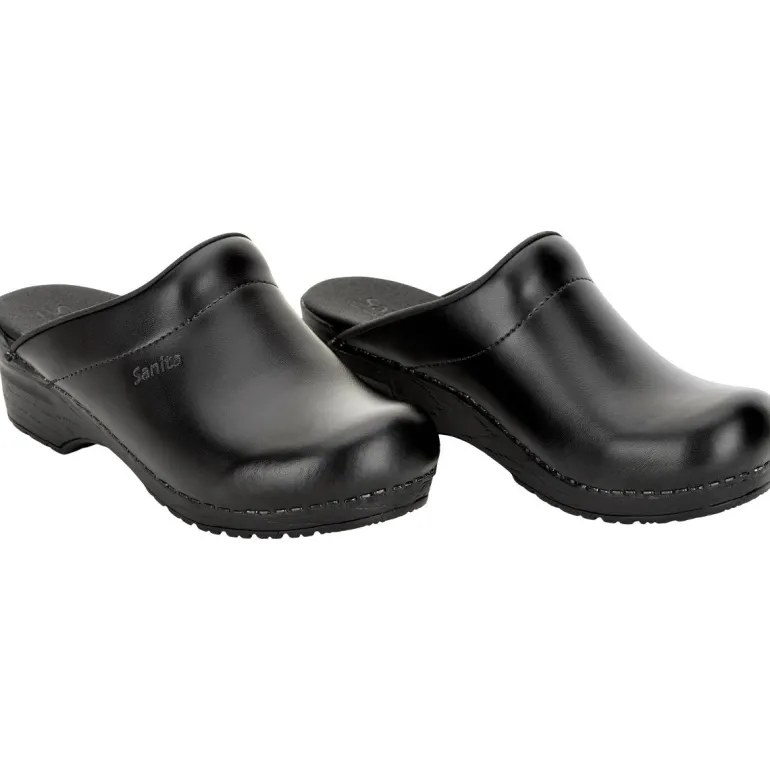 Sort Sonja tøffel lavet i PU læder som har en blød indlægssål, der giver makimal komfort, stødabsorbering og god holdbarhed. De er perfekte til både hverdag og professionel brug.