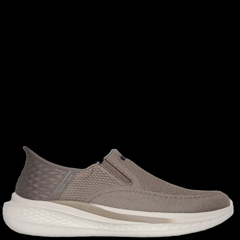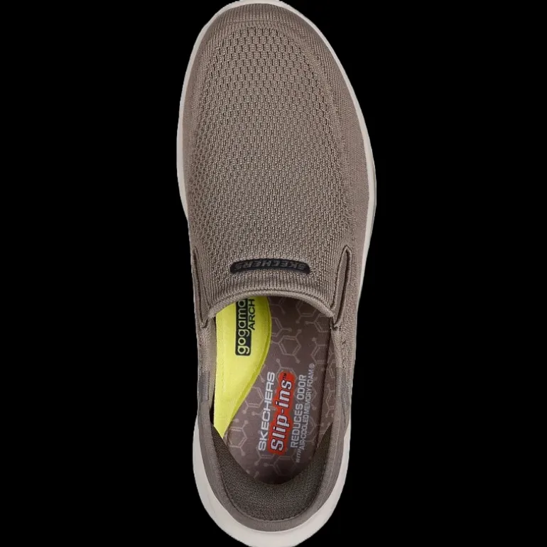En casual og behagelig gang med Skechers Hands Free Slip-ins® Relaxed Fit®: Slade – Deacon. Denne slip-on med lav profil er designet med vores eksklusive Heel Pillow og har en overdel af strikket mesh med en Skechers Air-Cooled Memory Foam®-indersål med trækul og Skechers Memory Arch for ekstra støtte.